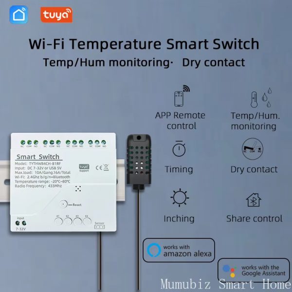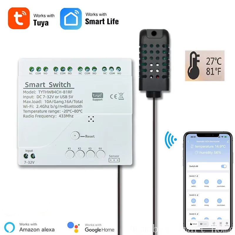 - Beznapěťový spínač 4CH s měřením teploty a vlhkostiTuya