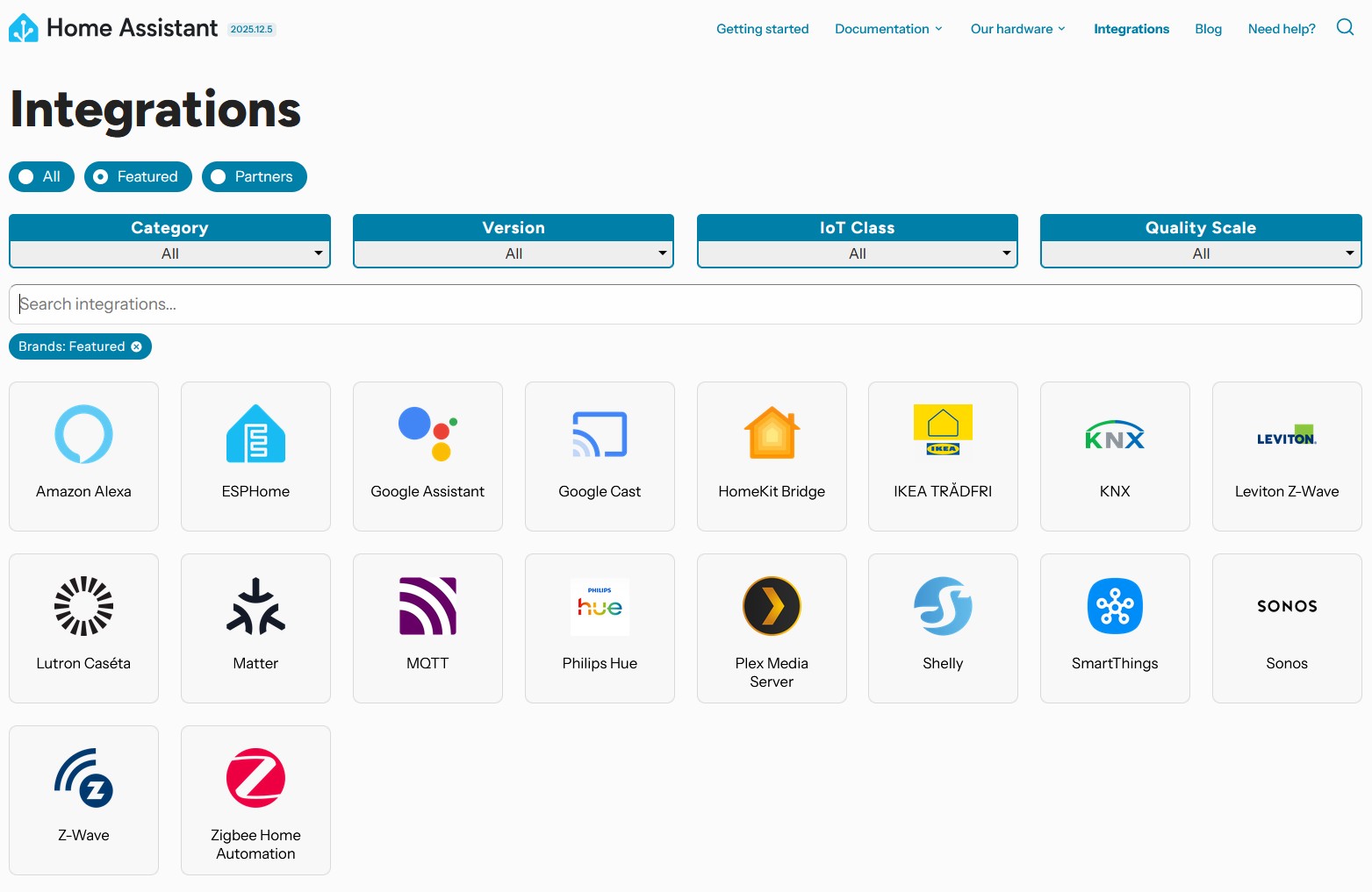 Home Assistant dnes podporuje tisíce různých integrací.