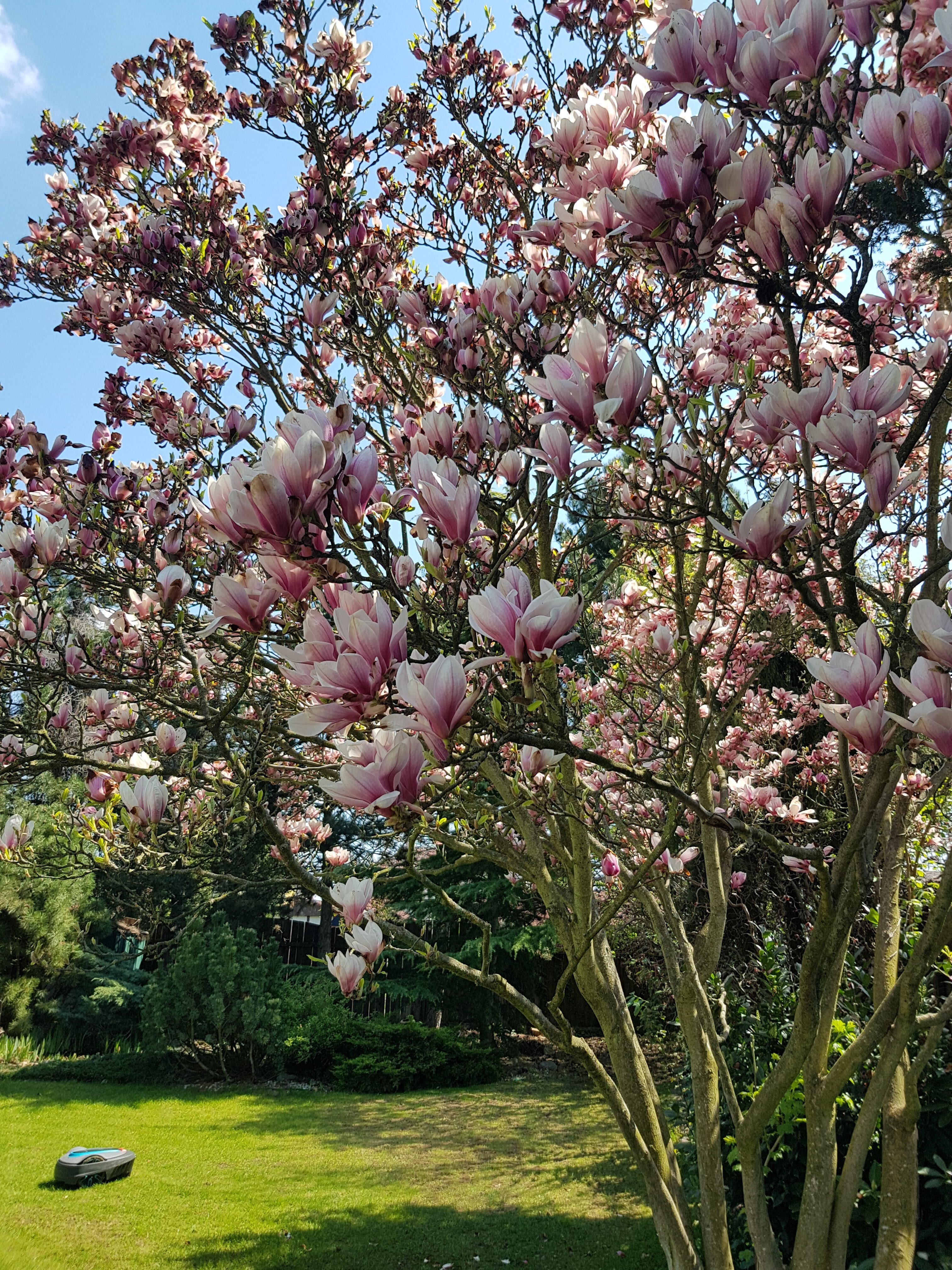 Sekačka na trávu - pořídili jsme robotickou sekačku Gardena, která opět nabízí integraci do Home Assistant. Pokud se sekačka nadzvedne - najede-li např. na větší šišku, vyhodnotí to jako chybu a zastaví se. Google Home v tu chvíli zahlásí "Mow má nějaký problém" (Mow je jméno naší sekačky) a HA manželovi pošle na mobil notifikaci. Zpočátku, dříve než byla zaintegrovaná do HA, měla-li podobný problém, tak nějakou dobu stála, dokud jsme si nevšimli, že neseká. Nyní se o problému dozvíme hned. Tento nechtěný čas "odpočinku" může sekačka trávit ve svém domečku a mezitím se dobíjet.
