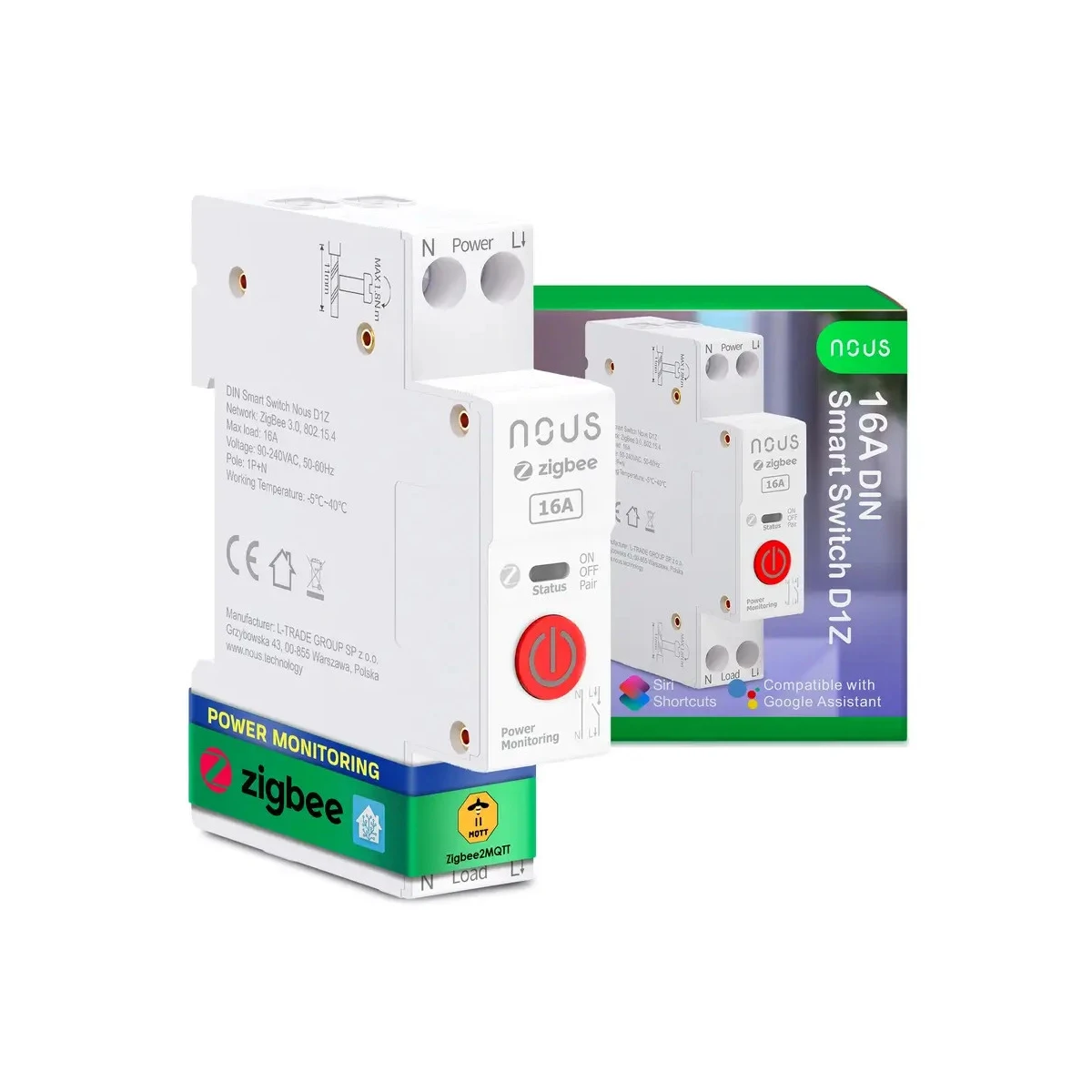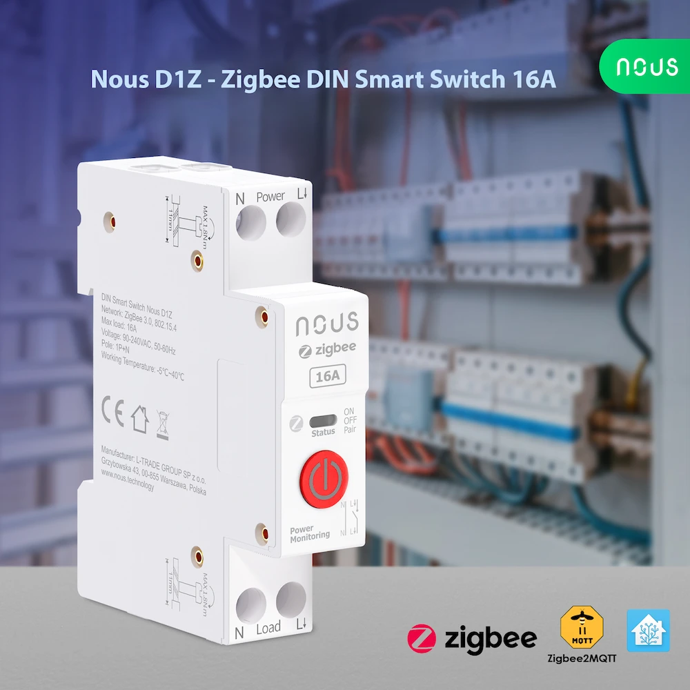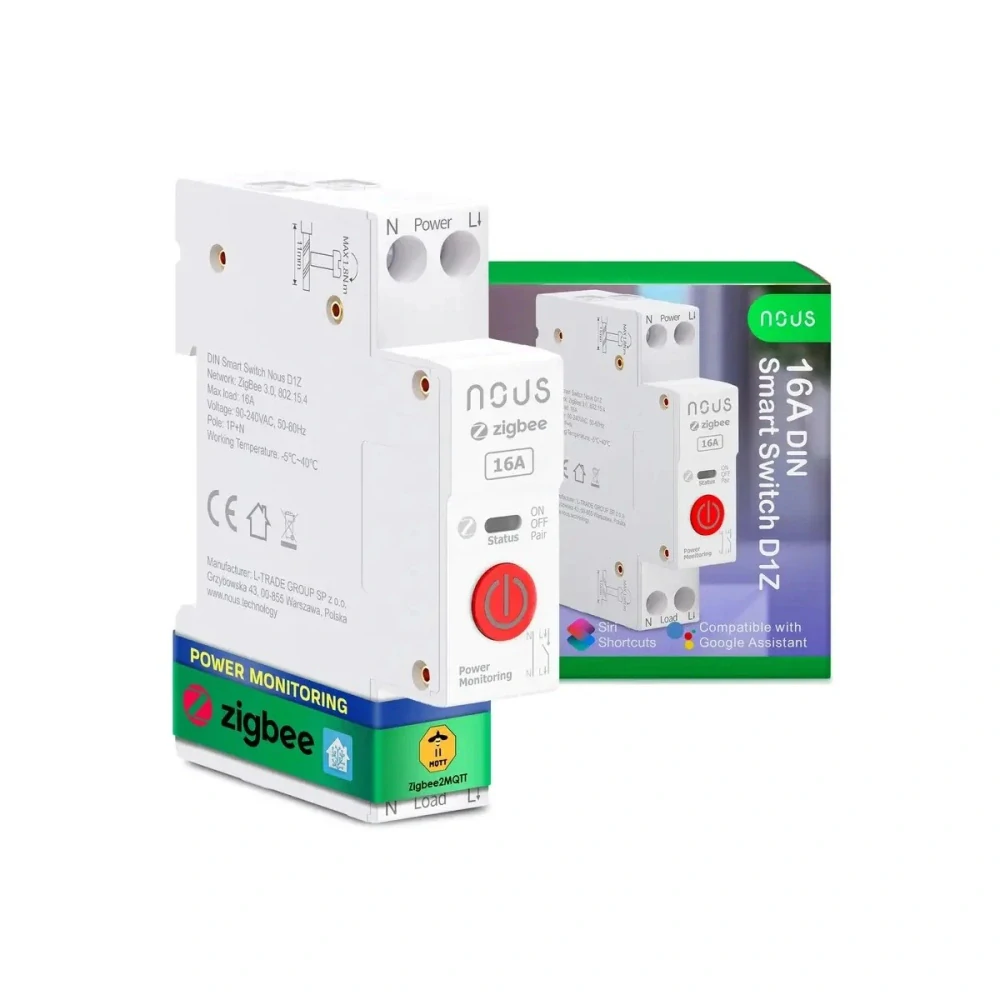 NOUS D1Z je chytrý spínací modul pro montáž na DIN lištu, který slouží k dálkovému ovládání jednoho elektrického okruhu a zároveň k měření spotřeby energie. Hodí se do rozvaděče tam, kde chcete mít spínání řešené čistě a pevně, bez zásuvkového adaptéru nebo viditelného modulu u spotřebiče. Komunikuje přes ZigBee 3.0, takže vyžaduje kompatibilní ZigBee bránu, a po spárování umožní ovládání z mobilní aplikace, automatizace, časové plány i přehled o aktuální a historické spotřebě.