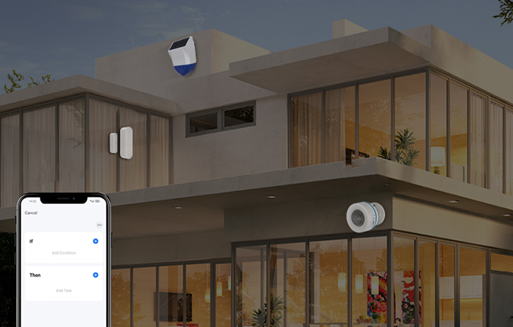 Po detekci "alarmu" některým z čidel a senozorů, můžete přes automatizaci vytvořit v aplikaci scénu, která za určitých okolností spustí velmi hlasitou sirénu o výkonu 95 dB / 1m (90 dB / 3m), popřípadě začne blikat pronikavým modrým světlem. Je také možné nastavit jen světlo a akustický alarm nepoužívat.