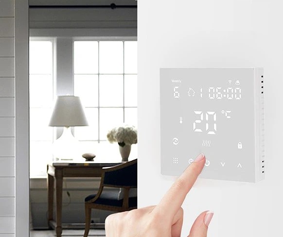 - Solidní konstrukce, dotyková tlačítka na dispeji termostatu